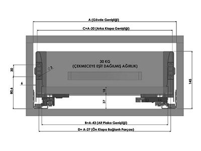 Çekmece Kasası H=128 mm | ||||
